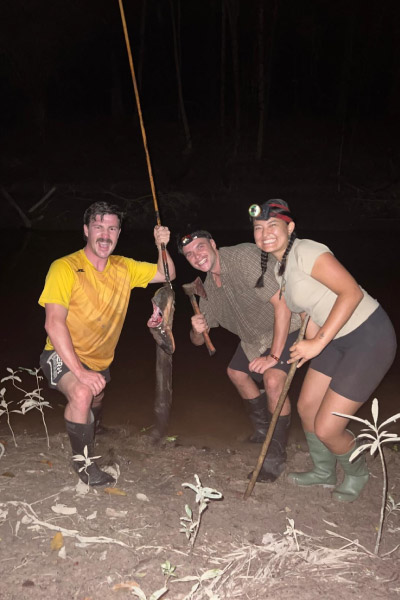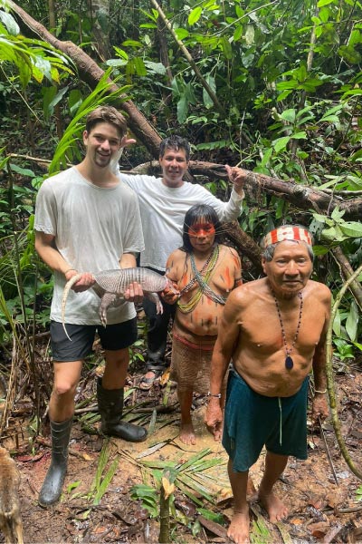 Paralelamente, dedicaremos jornadas al arte de la fabricación de herramientas ancestrales. Participaremos en la elaboración de trampas y utensilios de pesca, adquiriendo habilidades prácticas que han garantizado la subsistencia de la tribu durante milenios. Las noches serán el momento de integración final: alrededor del fuego comunal, compartiremos la caza o pesca del día, escucharemos la mitología antigua y, para quienes busquen trascendencia, se abrirán los espacios para las ceremonias de medicina sagrada (Kambó o Nënë), cerrando cada día con una conexión espiritual tan profunda como la selva que nos rodea.
